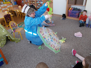 Ale w przedszkolu nr 20 niczego nie udawaliśmy. Wesoło spędziliśmy czas na rozważaniu tematu: czy słuszne jest to, że żabki mają kolor zielony?